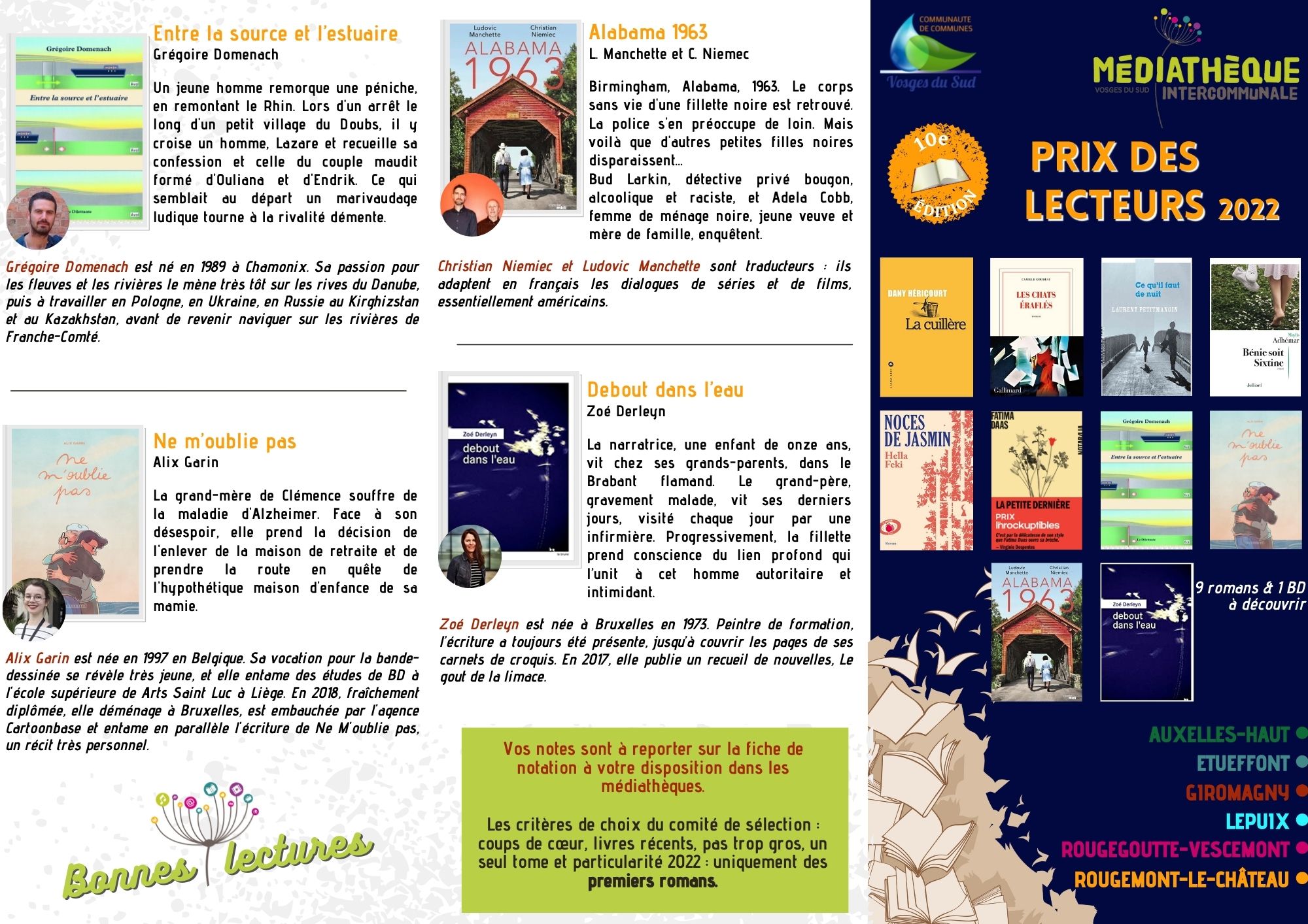 9 romans et 1 BD à découvrir dans les médiathèques des Vosges du sud.