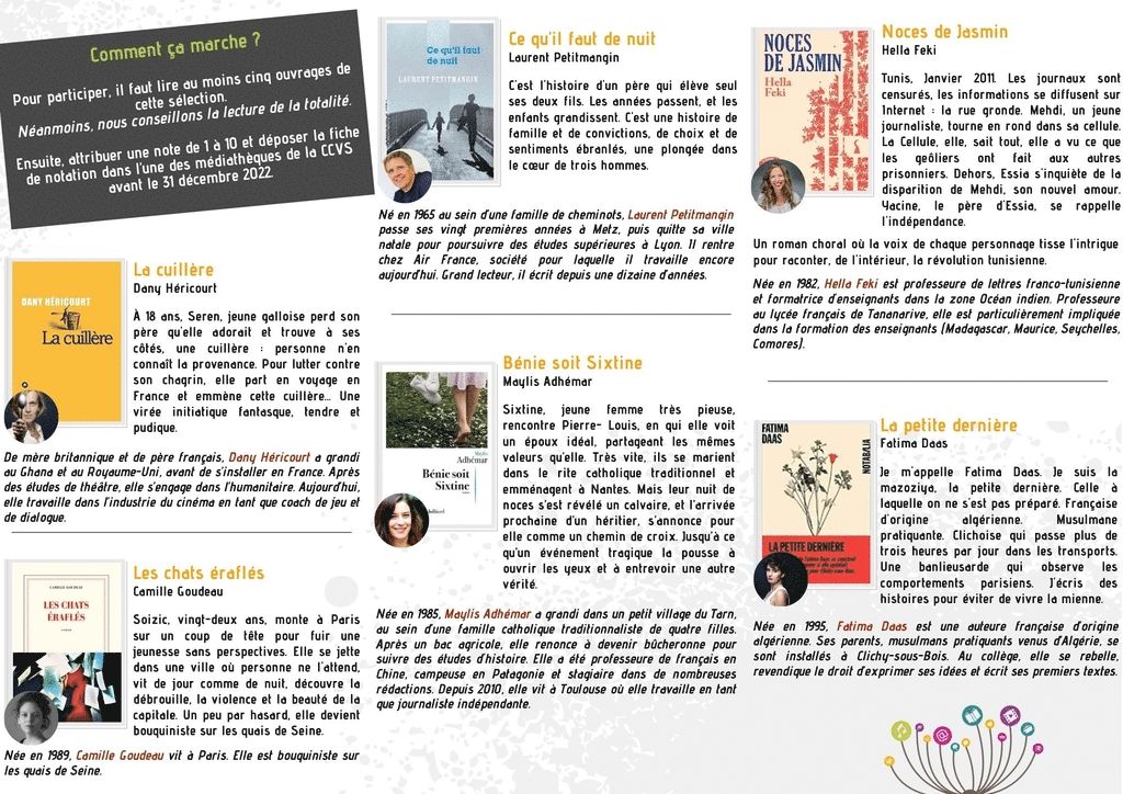 Un comité de sélection se retrouve plusieurs fois par an pour échanger leurs coups de coeur et y sélectionner des livres qu'ils souhaitent partager aux lecteurs des médiathèques des Vosges du sud. Ceux-ci désignent alors, par la voie d'une note chiffrée, leur ouvrage préféré. Enfin, lorsque cela est possible, l'auteur lauréat est invité pour un échange privilégié avec tous les lecteurs intéressés.