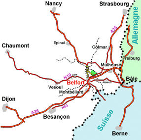 La Communauté de Communes du Pays Sous-Vosgien se situe dans le Nord Franche-Comté plus précisément dans le Territoire de Belfort (zone coloriée en vert sur la carte ci-dessous), à une douzaine de km au nord-est de Belfort.