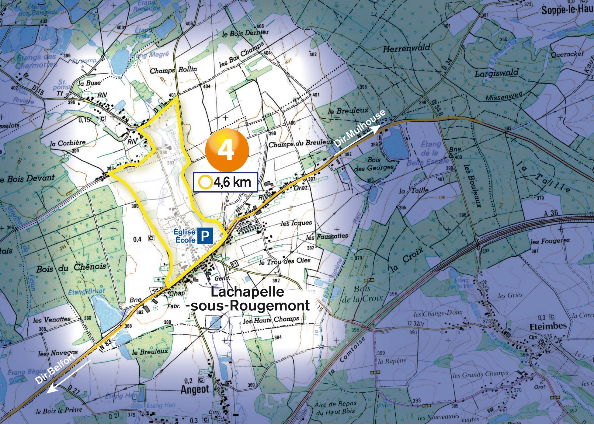 - En quittant à pied le parking devant l'église, suivre la route nationale en direction de Mulhouse sur quelques centaines de mètres.